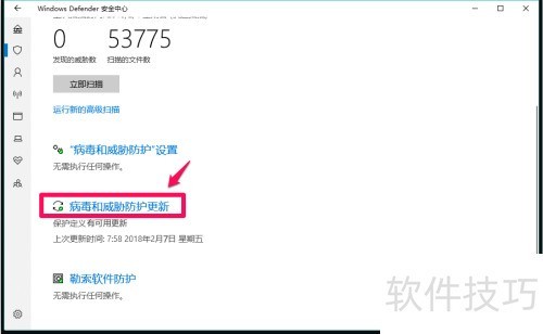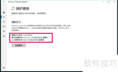 7、 点击检查更新后,系统将自动完成Windows Defender防病毒软件定义更新,包括KB2267602补丁(版本1.261855.0),稍等片刻即可完成安装与升级,确保病毒库处于最新状态。