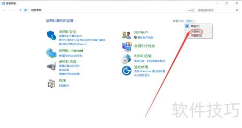 6、 进入控制面板的大图标视图。
