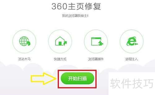 4、 此时打开360主页修复界面,点击开始扫描按钮进行检测。