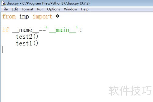 5、 修改diao.py文件,采用from import方式导入test2模块。