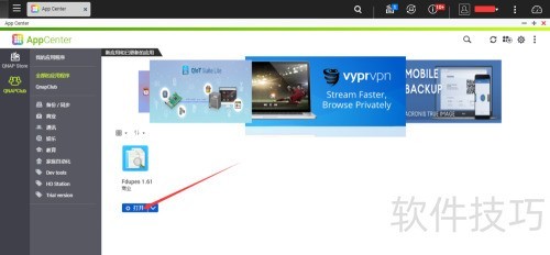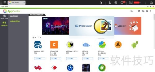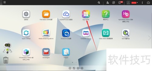 1、 登录QTS管理账号后,进入主界面并点击App Center,此时系统仅显示官方的QNAP Store应用商店,其他第三方来源尚未启用或不可见。