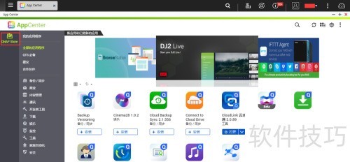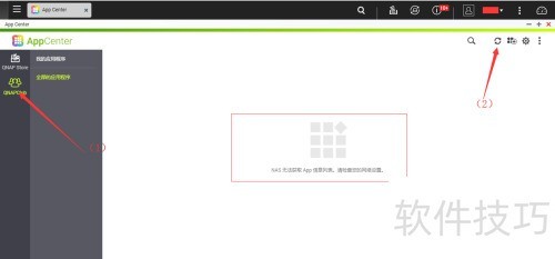 6、 进入新增的应用商店操作步骤如下:首先点击左侧新出现的QNAPClub选项,此时页面中央通常提示NAS无法获取App信息列表。接着点击刷新按钮,中央区域便会加载并显示当前商店内的所有应用内容。若初次未显示,可多次刷新直至应用列表正常呈现。
