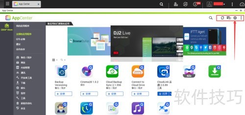 2、 在App Center内添加应用商店,点击右上角齿轮图标,进入设置页面进行配置。