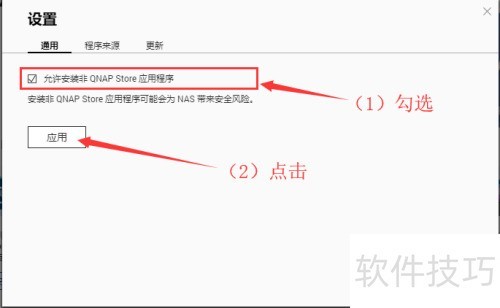 3、 进入配置-通用,勾选允许安装非QNAP Store应用程序,然后点击按钮确认设置。