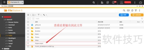 10、 可通过两种方式查看结果。第一种是在WebUI界面中操作,先进入fdupes results页面,随后在结果展示区域浏览重复文件的详细信息。第二种方式是查看本地生成的fdupes.out文件,通过File Station定位到/Public/fdupes.out,将其下载至本地设备,再使用文本编辑工具(如记事本)打开该文件,即可查阅检测出的重复文件列表。两种方法均可有效获取分析结果,便于用户进行后续处理与管理。