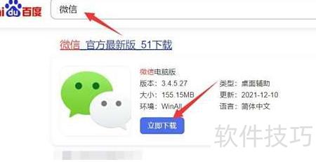1、 在电脑浏览器搜索微信,找到电脑版并点击立即下载即可。