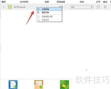 5、 打开电子书文档后,右键点击项目,从菜单中选择开始转换即可执行转换操作。