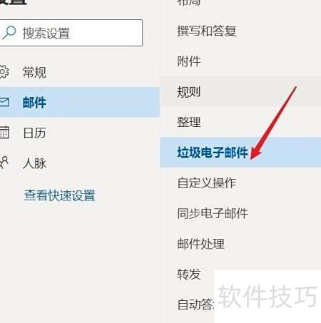 3、 选择垃圾邮件选项。