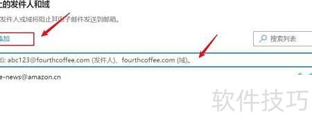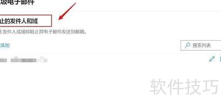4、 查找被阻止的发件人及域名选项。