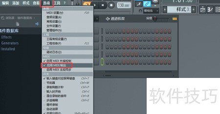 3、 在FL Studio的设置菜单里,需勾选启用MIDI输出选项,否则软件将无法发送MIDI信号。确保此项开启,才能正常使用MIDI设备进行音频输出和控制。