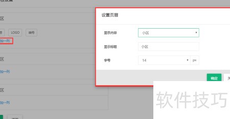 22、 点击页眉区域的添加一列按钮,可增加缴费收据页眉显示内容。