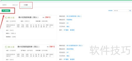19、 进入微小区管理中心,依次选择收费管理、收费设置、打印模板,进入管理页面后点击新建模板即可。