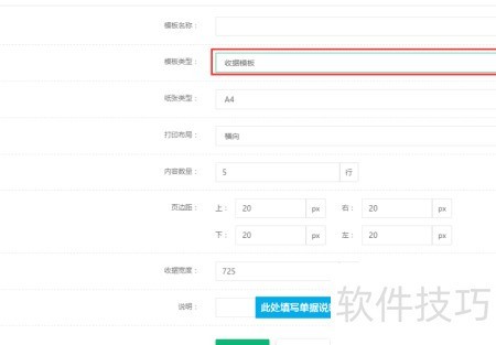 20、 输入模板名称,选择收据模板类型,填写说明内容后点击下一步。