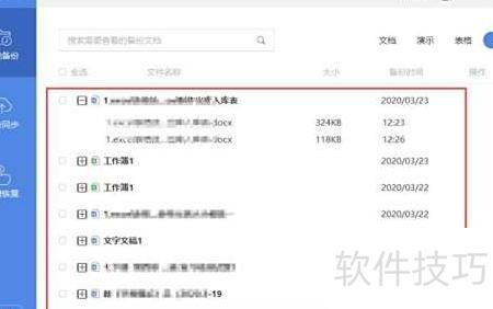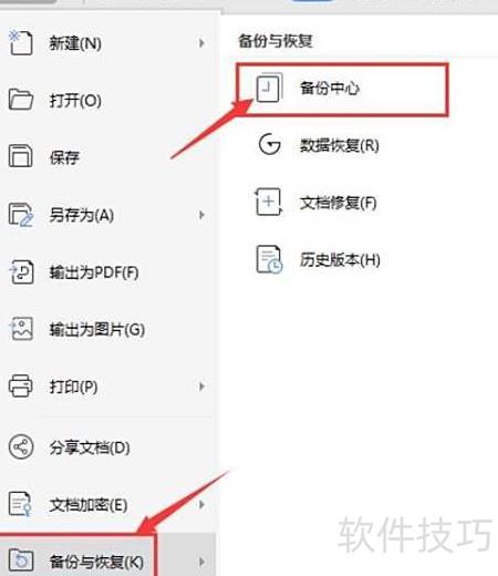 2、 在文档扫描件的下拉菜单选择备份与恢复,再于右侧列表点击进入备份中心。