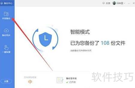 3、 此时会弹出备份中心窗口,显示已备份文件数量,点击左侧恢复本地备份即可操作。