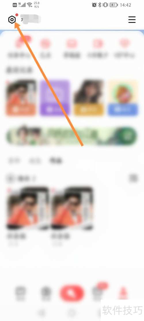 1、 打开手机全民K歌,点击顶部设置按钮进入配置界面。