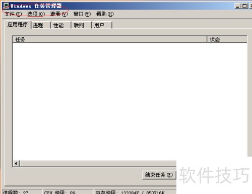 1、 在Windows Server 2003系统中,右键点击任务栏并选择任务管理器即可打开该工具。