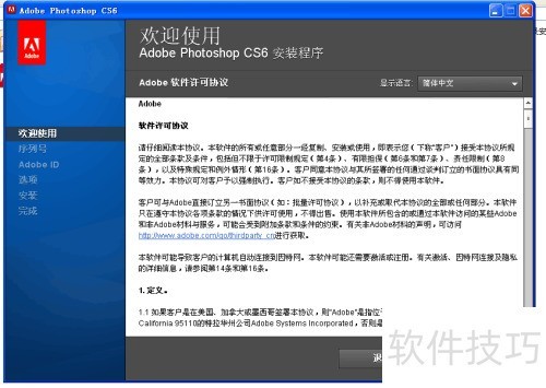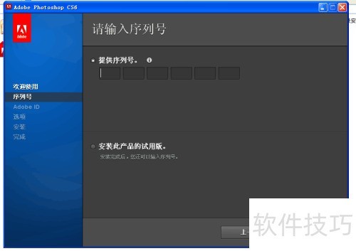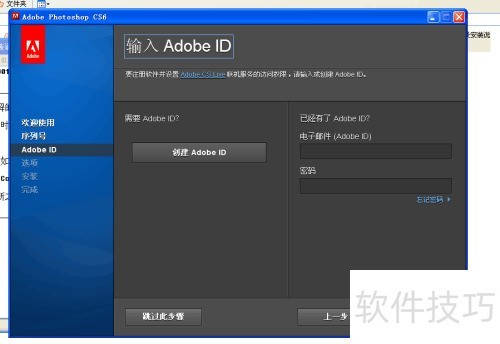 6、 出现要求输入Adobe ID的界面时,无需理会,直接选择跳过即可。