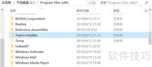 3、 Teams安装程序位于C盘的Program Files (x86)文件夹内。