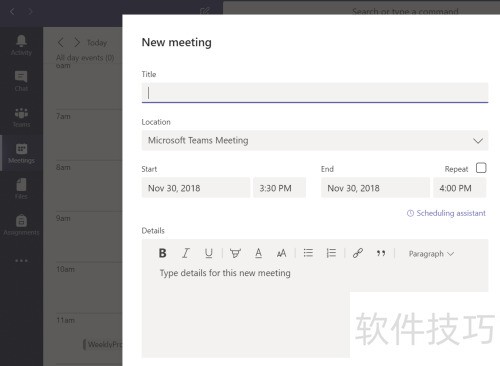 6、 点击左侧会议选项,可查看现有会议或新建会议,Team中创建的会议将自动同步至Outlook日历。
