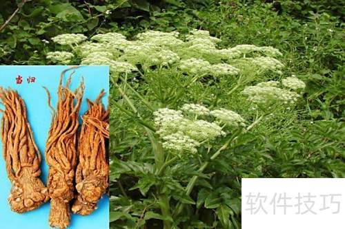 6、 当归为伞形科多年生草本,药用部位为根,具有补血活血功效,常用于治疗月经不调、血虚头晕及疮疡肿痛等病症。