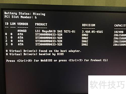 1、 开机自检时,按提示键Ctrl+H进入RAID配置界面进行设置操作。