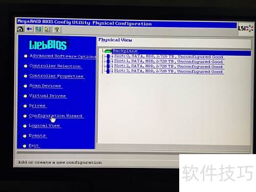 4、 选择新建配置,开始全新设置RAID阵列。