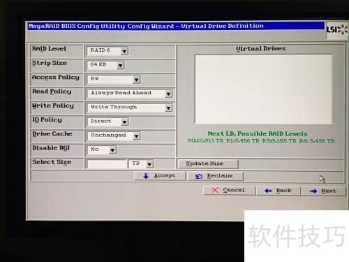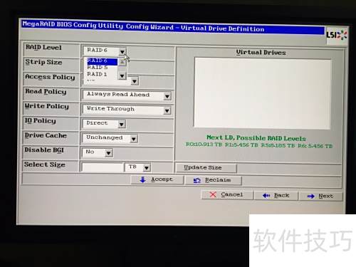 12、 在RAID模式选择中,9271-8i默认为RAID6,我们将其更改为RAID5。