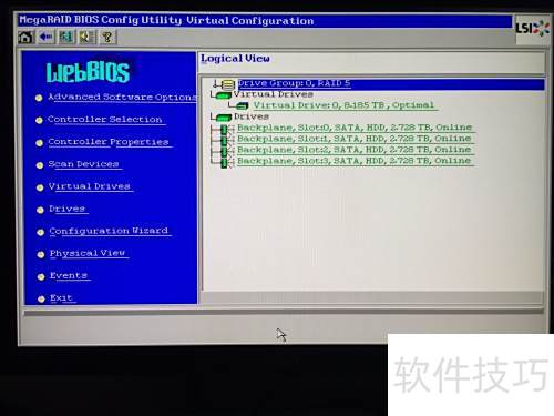 19、 RAID5已创建成功,保存退出后可查看阵列信息。