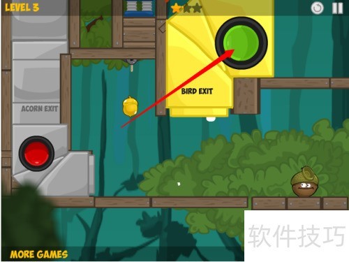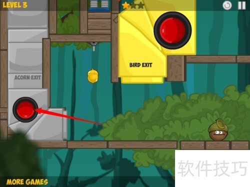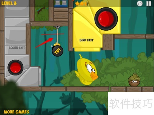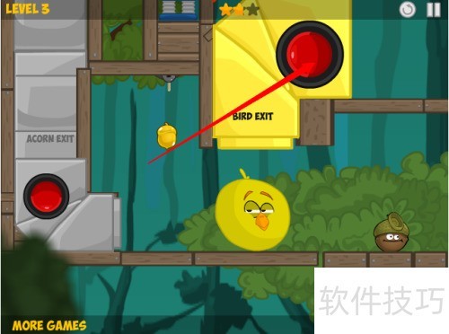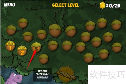2、 点击红色箭头所示的第三关进入游戏。