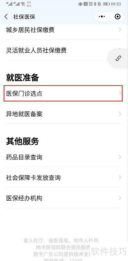 6、 进入社保医保页面,点击医保门诊选点进行操作。