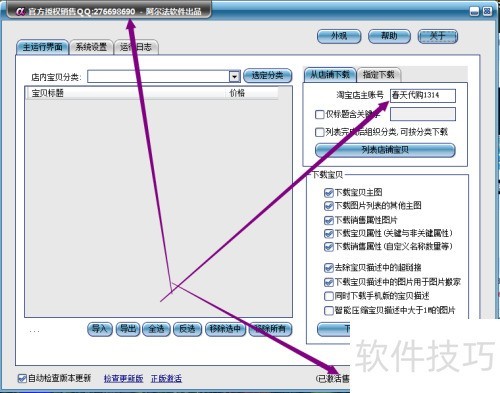 2、 第二步:启动软件,输入掌柜名并复制全店商品...