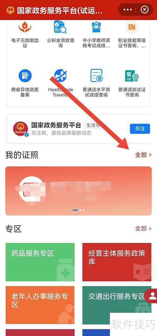 2、 进入我的证照后选择全部选项