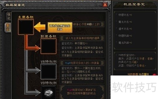 4、 当角色等级达到43级时,将解锁大裁决极品屋的免费鉴定功能。玩家只需点击游戏界面底部的鉴定图标即可进入系统。在鉴定界面中,可进行多种鉴定操作。将主装备放入主装备栏,并搭配一件相同的副装备置于副装备栏,主装备的全部属性会实时显示在右侧信息面板。借助幻化机制,这些属性将获得显著提升,实现品质上的飞跃。