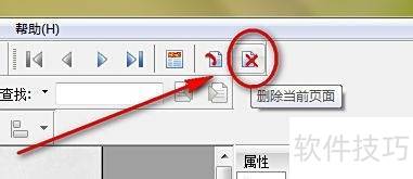 4、 点击界面右上方工具栏的删除按钮,确认移除当前页面。