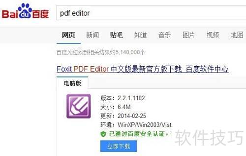1、 在百度搜索PDF编辑器,进入百度软件中心下载页面进行下载安装。