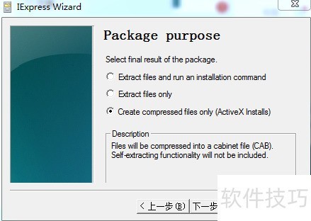 3、 选择仅创建压缩文件(ActiveX安装)选项,然后单击下一步继续操作。