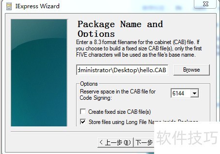 6、 点击浏览,为要添加的cab包命名并选择保存位置。