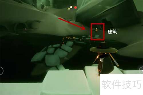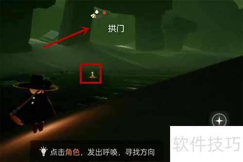 2、 进入光遇的暮土地图一,被风吹落后,右侧拱门前的河边即可发现第一支季节蜡烛。