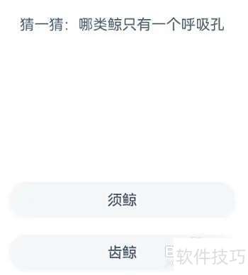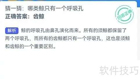 1、 在神奇海洋中答题:猜猜哪种鲸鱼仅有一个呼吸孔?