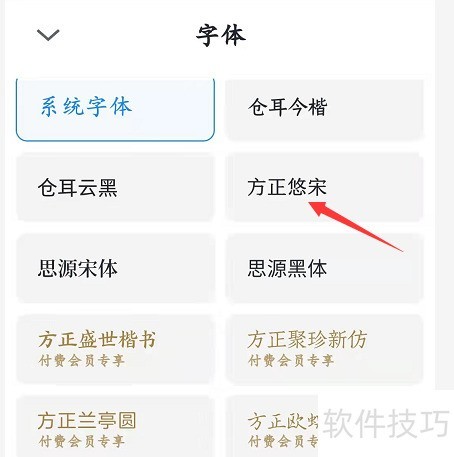 4、 选用方正悠宋字体即可。