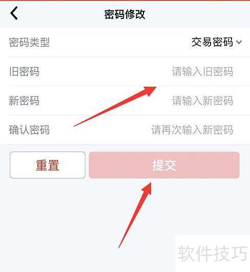 4、 进入密码修改页面后,选择交易密码进行操作。