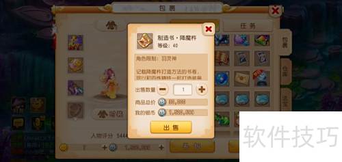 4、 显示可售制造书数量及所得银币,确认后点击出售即可完成交易。