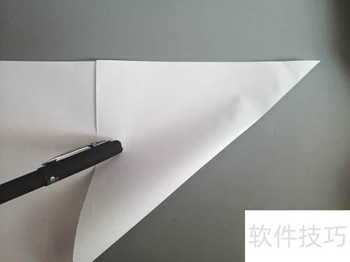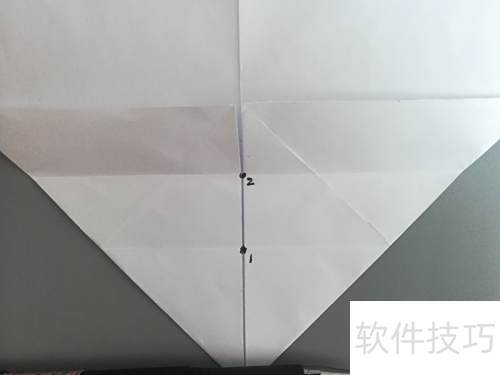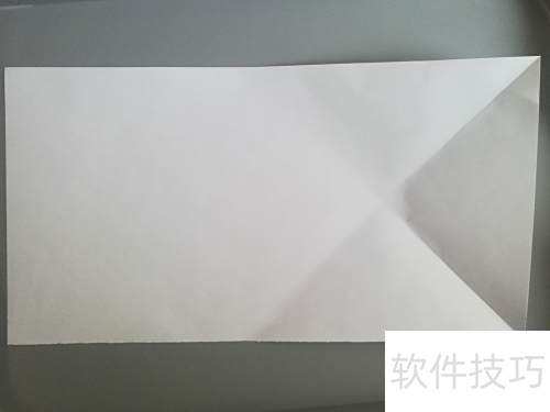 2、 将两角对准中线折叠,顶端形成三角形;将三角形顶角折向底边中点,压出第一条折痕后展开;再将该折痕与三角形底边对齐折叠,压出第二条折痕后展开即可。