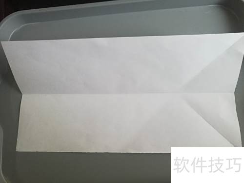 1、 取一张A4纸的三分之二部分进行演示。先将一端两角分别折出角平分线,折出小段痕迹即可;随后将纸张沿中线对折,压出折痕后展开。