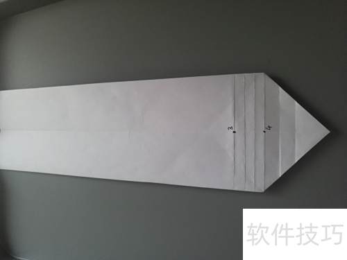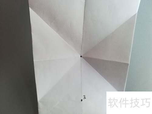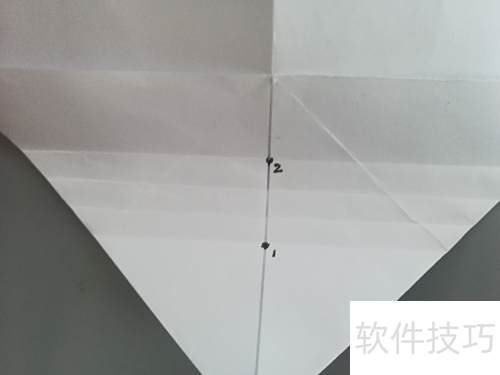 3、 将折痕1与折痕2之间的区域平均分成三份,并在每等分处压出新的折痕线。