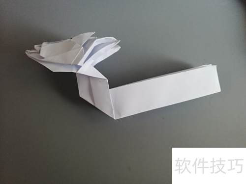 16、 将龙尾部分的上层纸张向反方向折叠,一条迷你龙便完成了。我还用窄长的A4纸条折出一条中国龙,因体型较小,细节难以清晰呈现,这里先展示整体效果,感兴趣的朋友不妨动手尝试折叠。