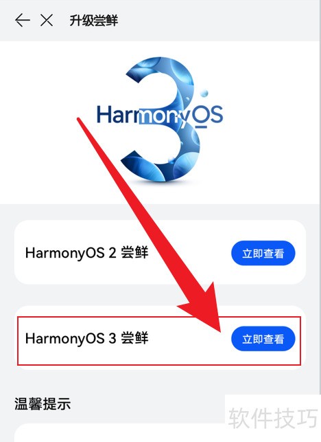 查看鸿蒙3.0升级名单需完成四个步骤,具体操作流程如下所述。