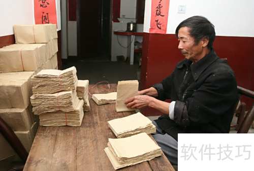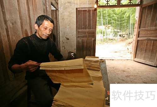 2、 将辅料混入纸浆,用竹帘等工具抄捞成型,晾干后即成纸张。