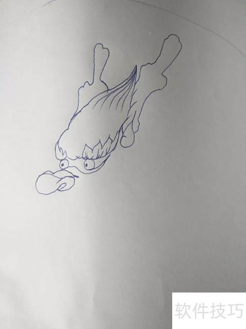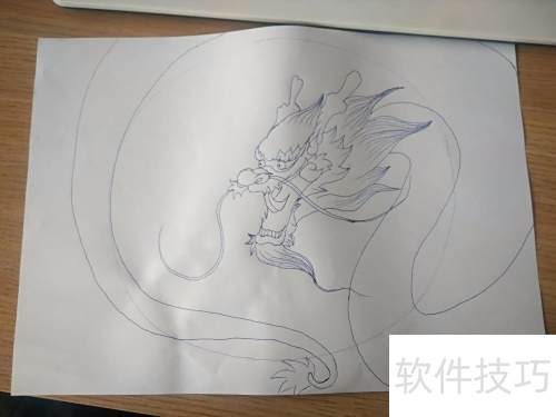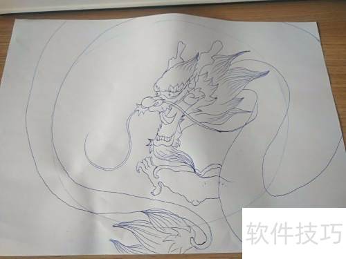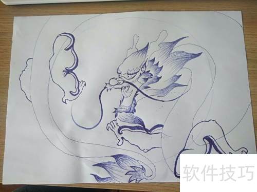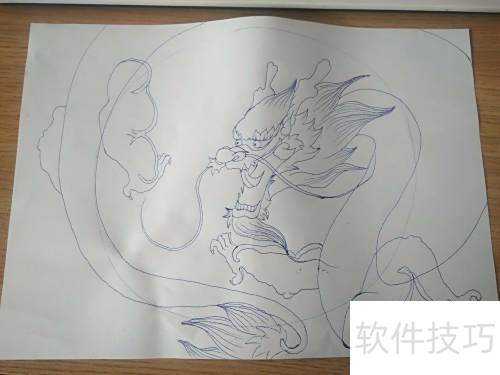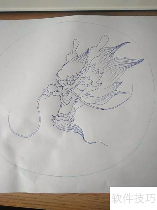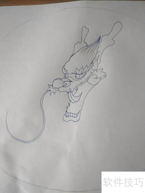 2、 先在纸上画一个大圆,用来确定龙的大致位置。